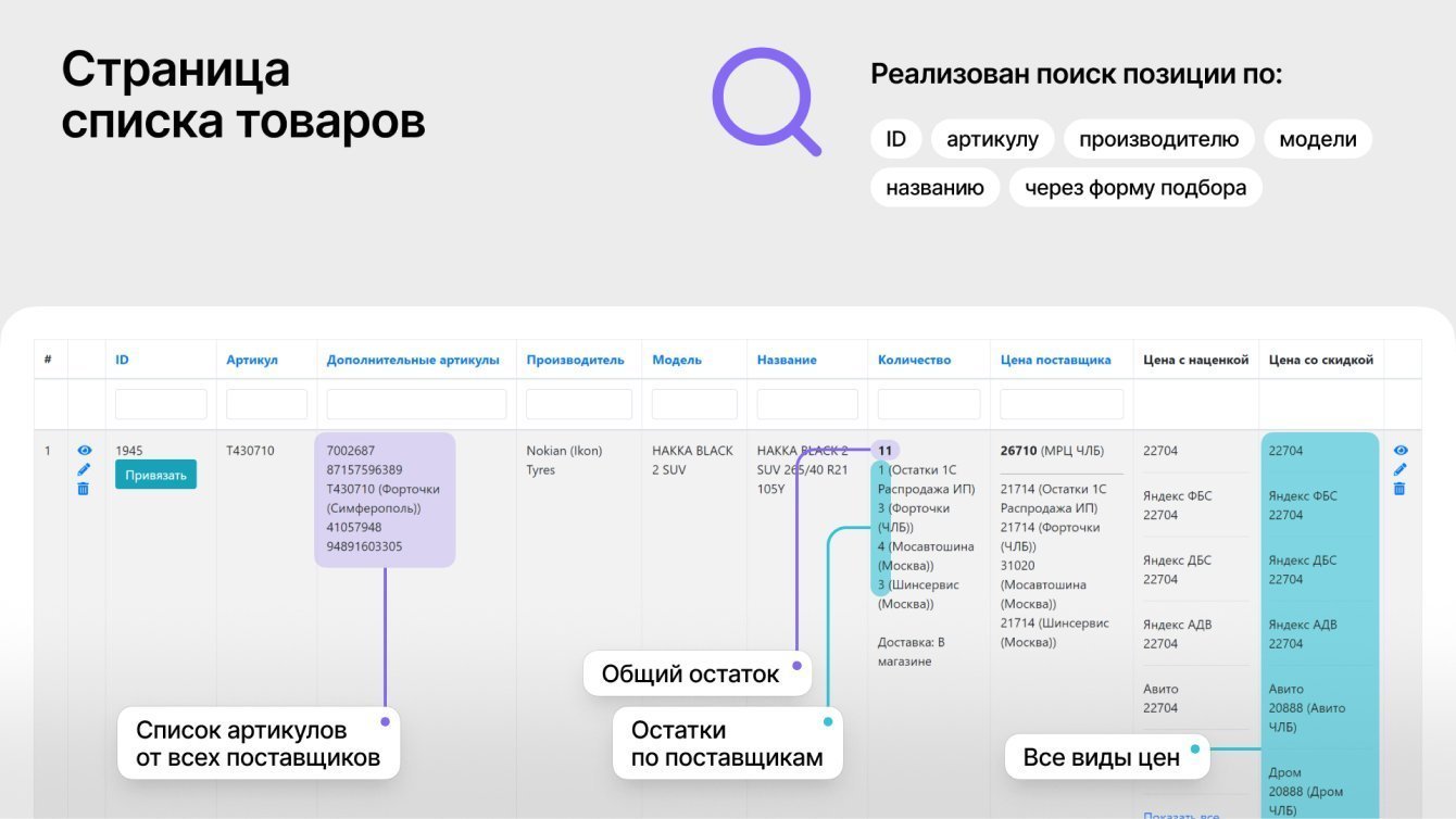 При создании интернет-магазинов мы поняли, что нужен сервис, который позволит управлять товарами (описанием, ценами, скидками и остатками у поставщиков) как на сайте интернет-магазина клиента, так и в его каталогах на маркетплейсе.