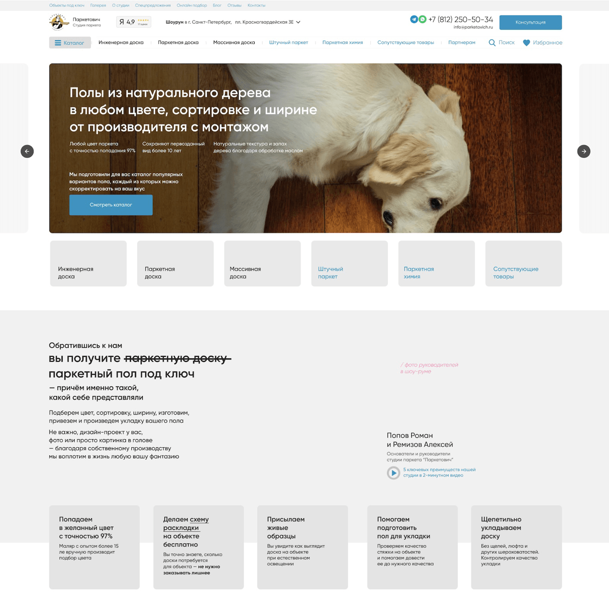 Мы начали с детального интервью и брифинга, чтобы понять бизнес, его сильные стороны и реальные задачи. Вместе с командой «Паркетович» определили, кто их клиент, какие боли и страхи он испытывает при выборе паркета, и какие аргументы действительно работают на рынке.