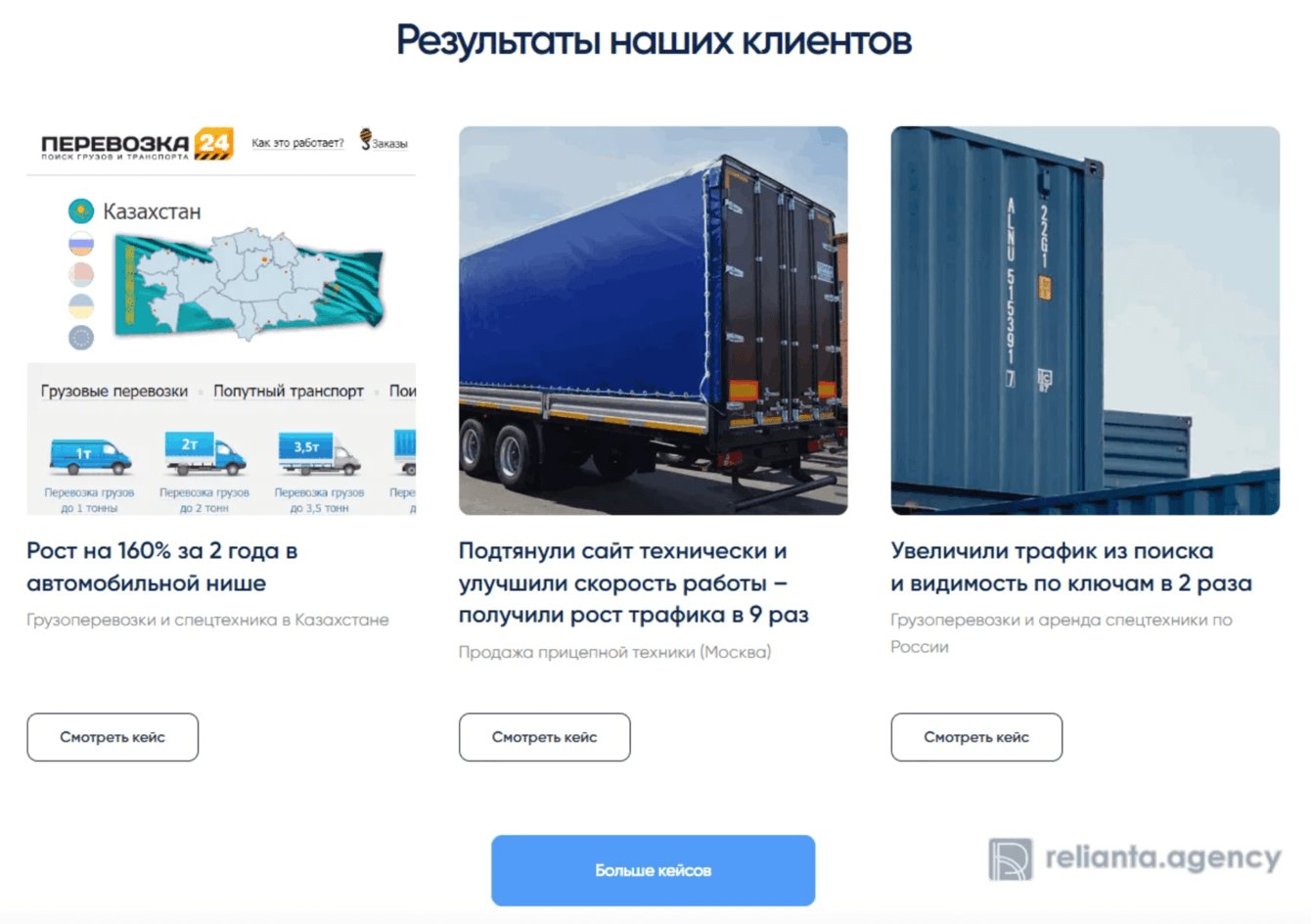 С первых дней выкладывали и кейсы по нашим клиентам, о которых мы не можем молчать. У нас стандартная схема: выполнили добросовестно работы — получили крутой результат — рассказали об этом на сайте. Большинству будущих клиентов эти истории особенно нужны, они могут увидеть в этих историях свои проблемы и возможные решения.