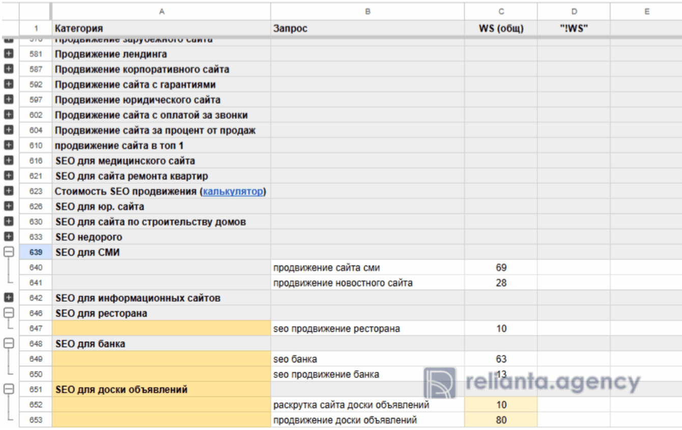 Для повышения скорости работы с семантикой мы использовали Semrush, Ahrefs и инструмент для подбора запросов и анализ рынка от Яндекса. В начале мы взяли низкочастотные запросы конкурентов, которые тем не менее, являются высококонверсионными. Далее использовали собственные фильтры для установки приоритетов создания страниц.