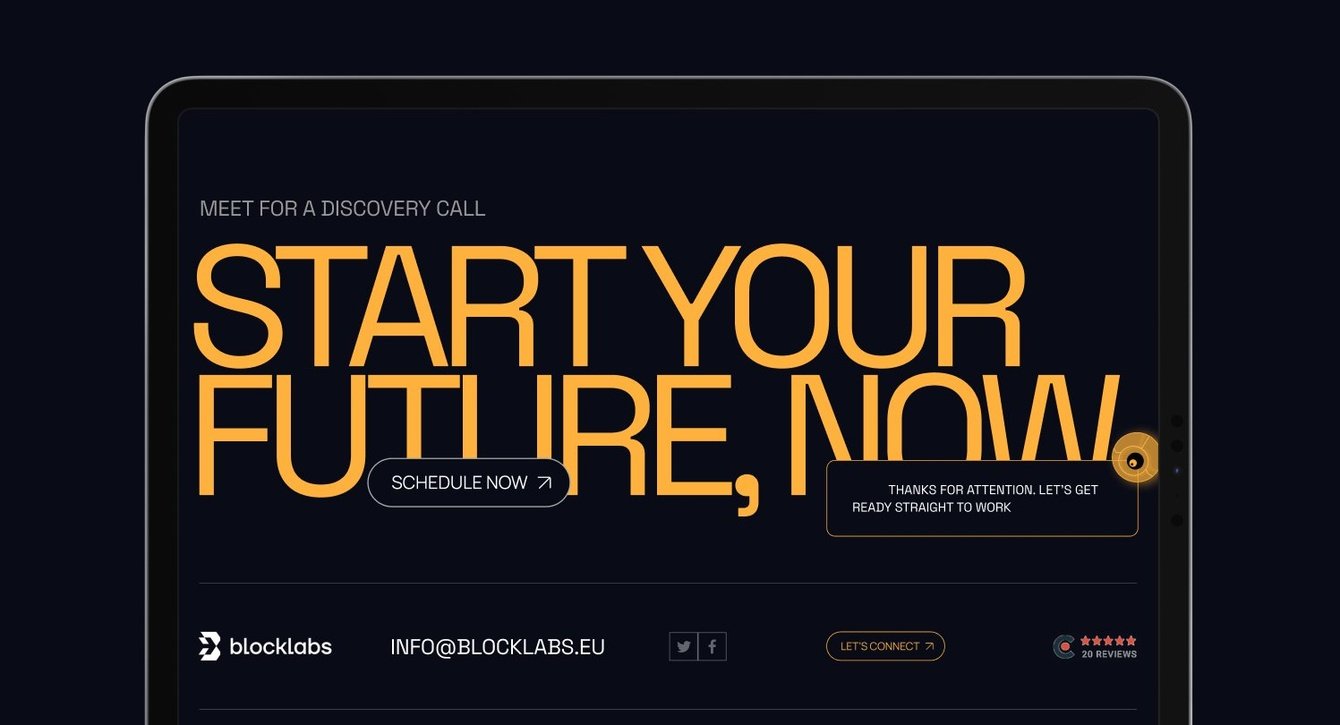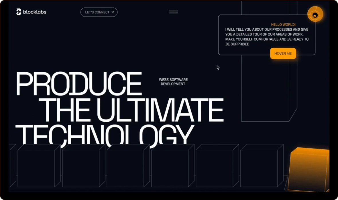 К нам обратились наши партнёры — канадское агентство Маркетика — с задачей разработать промо-лендинг для компании Blocklabs. Блоклабс занимается разработкой в сфере Web3 — запускает крипто-кошельки, промо для NFT и делает прочие технологичные интересности.