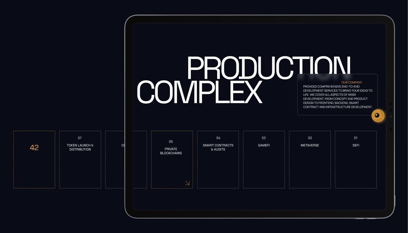 В этой концепции мы хотели выразить Web3 как необъятный и современный мир, в центре которого находится наш бренд — Блоклабс. В этой вселенной он — самая яркая галактика. Каждая звезда и планета в космосе имеет свою сложную структуру — также, как услуги и направления деятельности компании.