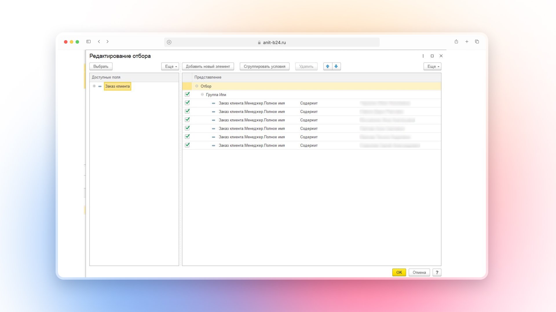 Была настроена выгрузка заказов по менеджерам, чтобы разграничить отделы и зоны ответственности, а также ускорить работу и уменьшить время отклика.