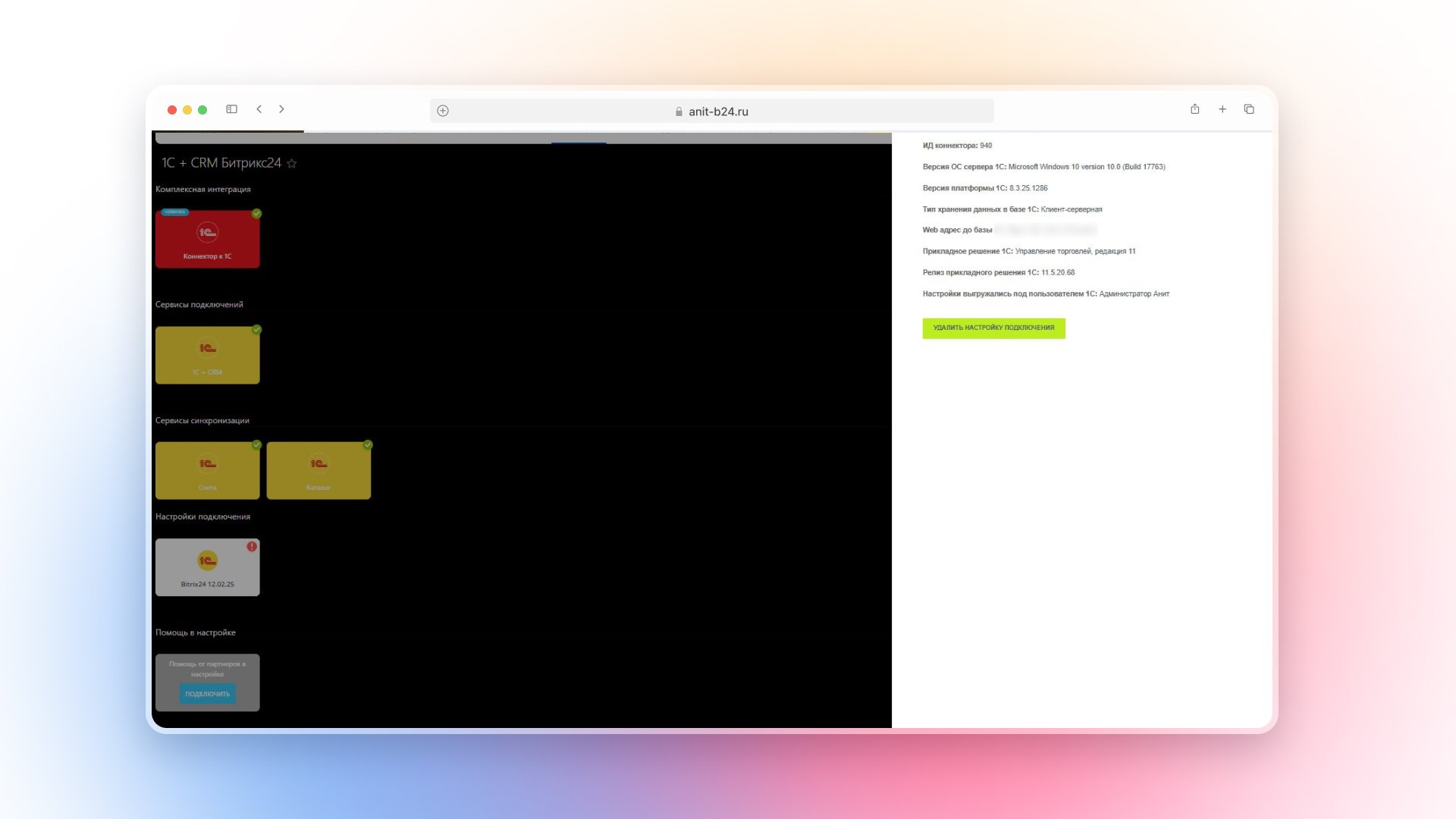 • настроить одностороннюю интеграцию из 1С в Битрикс24 с учётом нестандартной конфигурации клиента;