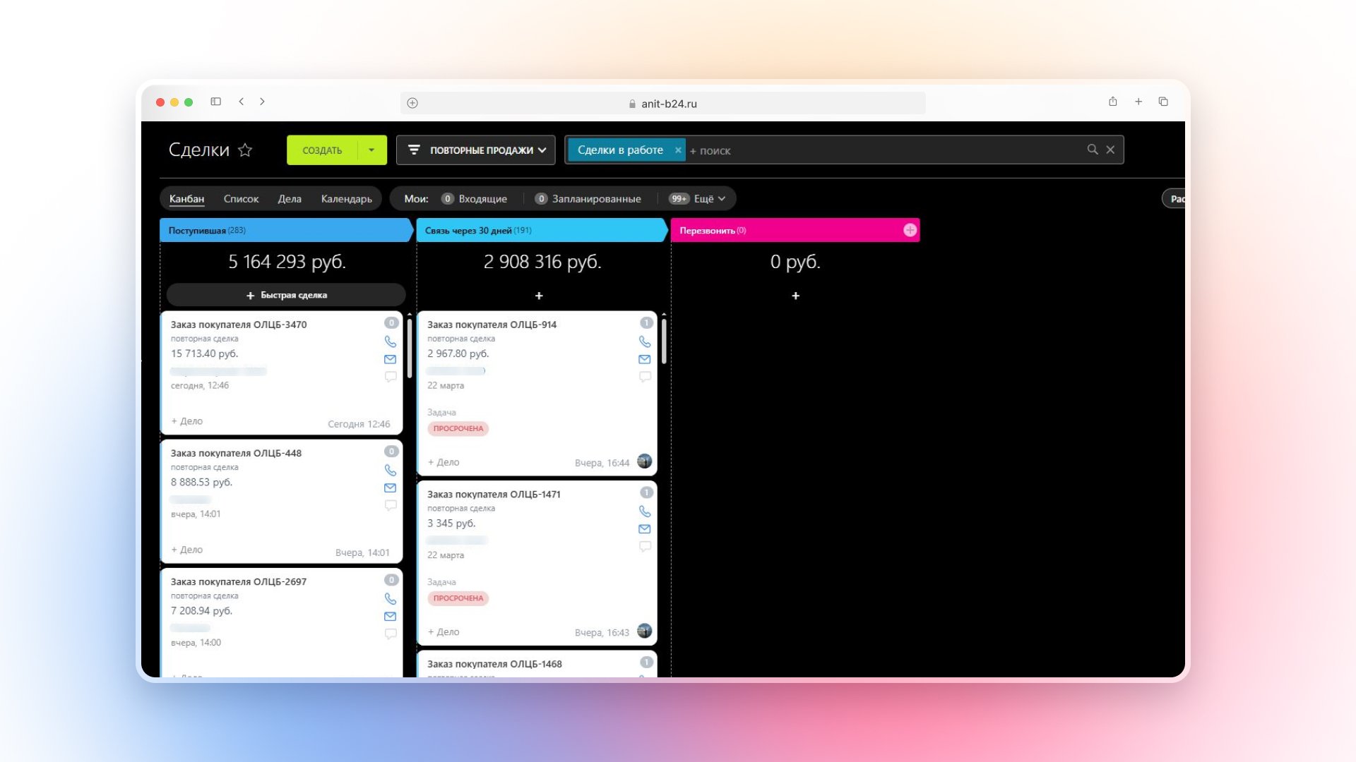 CRM стала частью повседневной работы менеджеров. Сделки в Битрикс24 отражают реальный статус заказов, задачи ставятся автоматически, структура работы понятна. Повторные продажи перестали быть стихийными: теперь они встроены в сценарий, который система запускает сама.