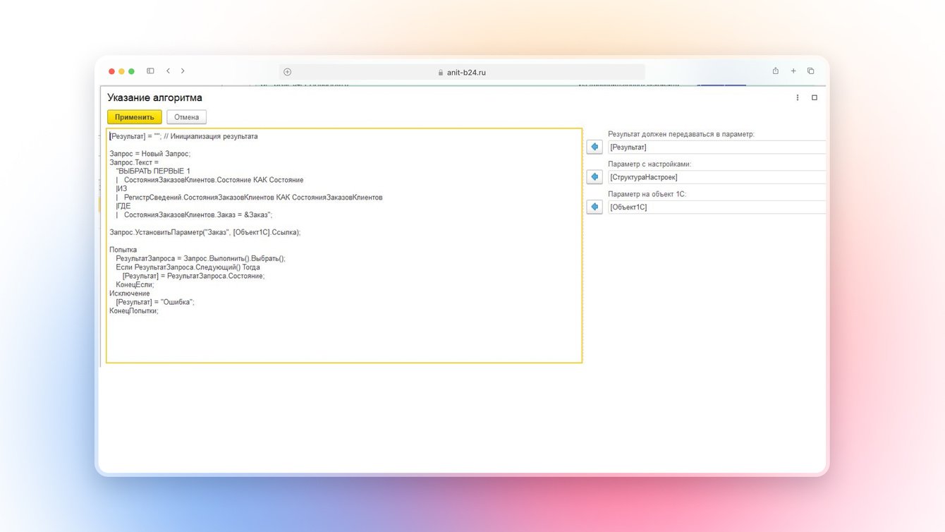 Типовой механизм коннектора не позволял корректно передавать статусы заказов: у клиента использовалась доработанная конфигурация 1С, несовместимая с базовой логикой. Мы разработали отдельный алгоритм выгрузки, который получает актуальные состояния заказов и передаёт их в CRM. Это обеспечило корректную синхронизацию и стабильную работу воронки.