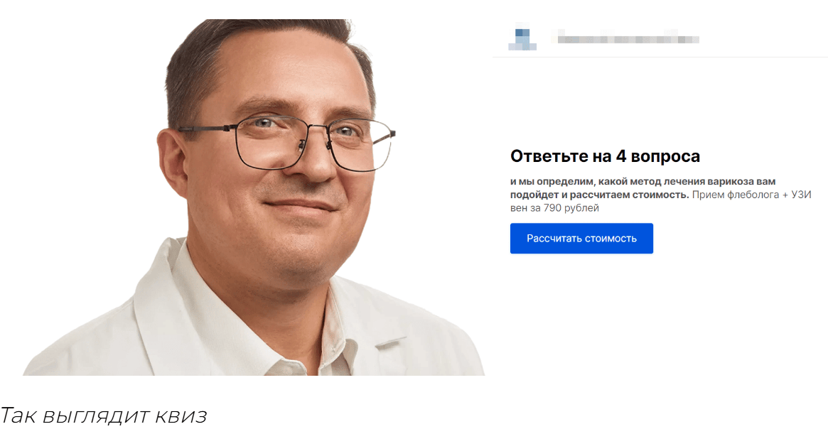 Мы погрузились в аналитику и заметили важную деталь: многие посетители сайта не были готовы записаться на прием сразу. Им хотелось сначала разобраться, действительно ли у них есть проблема и нужна ли консультация врача. И тут нас осенило! Мы внедрили на посадочную страницу виджет с квизом (небольшим опросником), а также запустили его как отдельный инструмент.