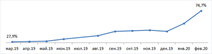 Увеличили в 2 раза количество переходов из поисковых систем в феврале 2020 года по сравнению с февралем 2019 года