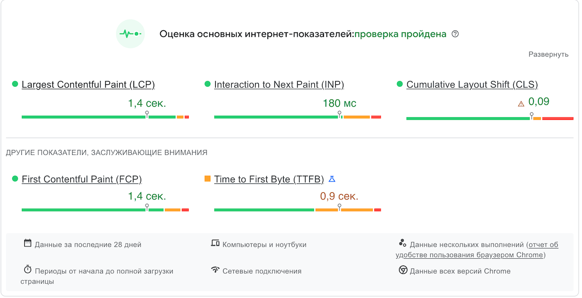 Была проведена оптимизация frontend-части по метрикам Core Web Vitals для успешного прохождения проверок в Google и как следствие лучшего ранжирования сайта в органическом поиске.