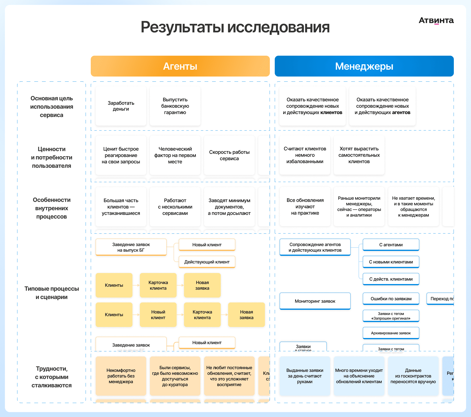 Мы провели кастдев-сессии с ключевыми пользователями — аналитиками, менеджерами и агентами. По итогам интервью зафиксировали конкретные поведенческие паттерны и повседневные барьеры в работе. Например: