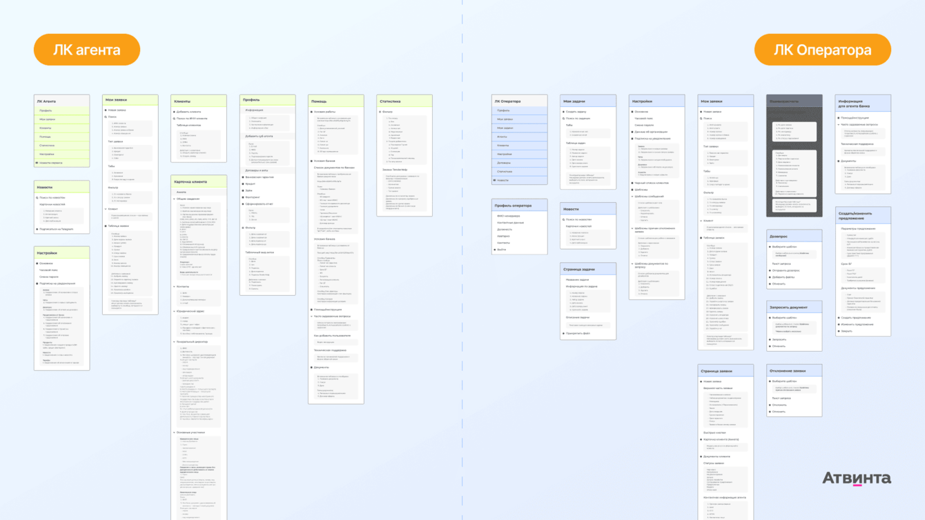 В результате сформировалась сложная структура кабинетов для разных ролей: агентов, менеджеров, аналитиков и операторов. Система стала перегруженной, возникли сложности с навигацией, единым стилем и логикой взаимодействия между пользователями.
