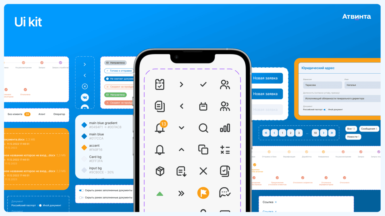 2. Проектирование и разработка дизайн-системы. Мы спроектировали универсальную структуру и подготовили стилеобразующий макет и UI kit.