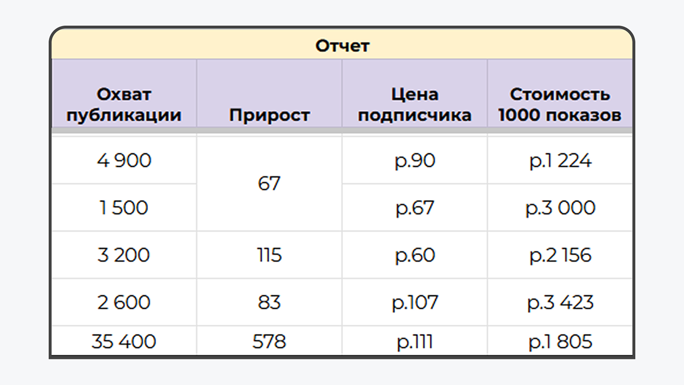 Эффективность привлечения подписчиков через посевы была выше среднерыночной: