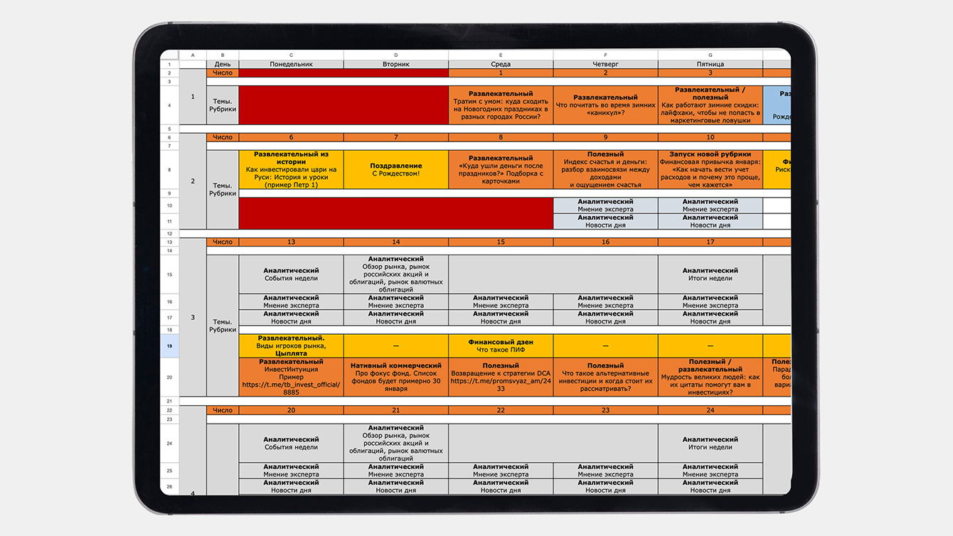Вид контент-плана с учётом интересов аудитории
