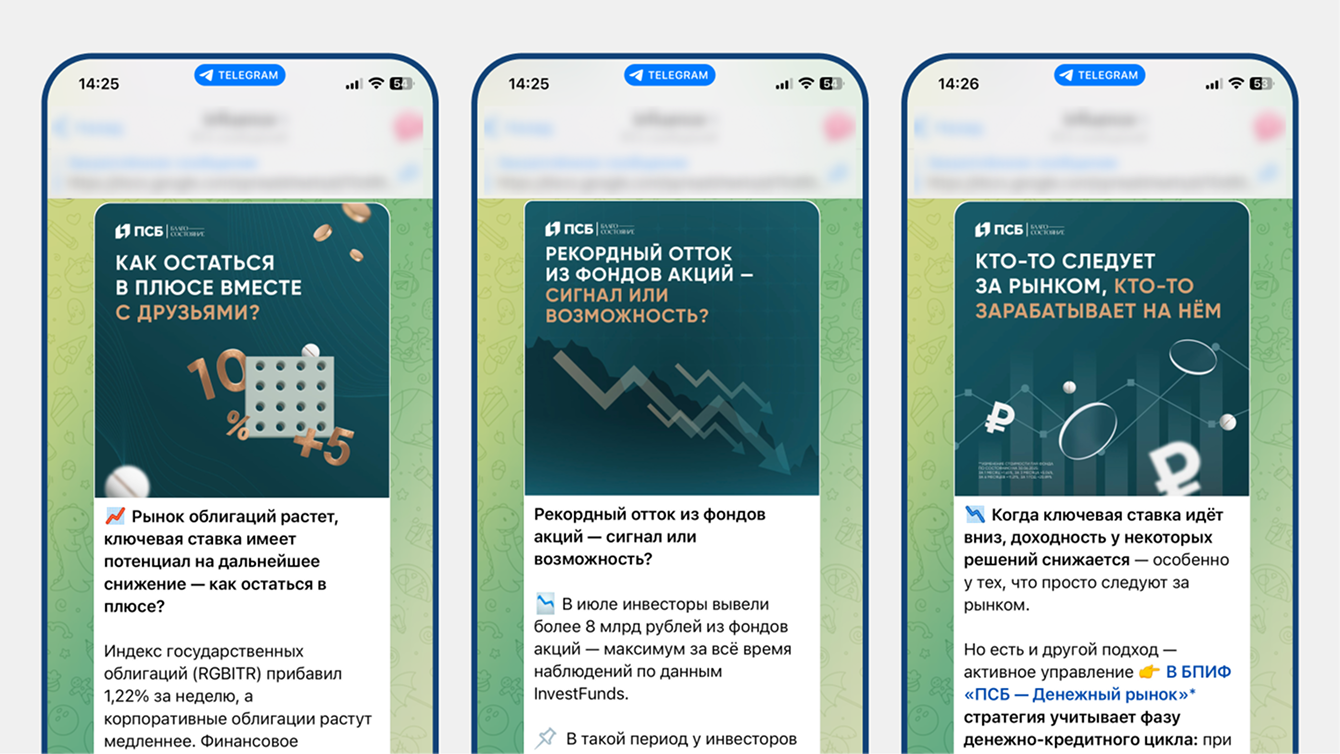 Закрепление экспертного имиджа бренда: регулярное присутствие в лентах целевых каналов и блогов экспертов укрепило доверие к УК ПСБ и повысило узнаваемость в инвестиционном сообществе.