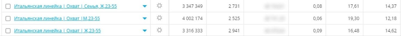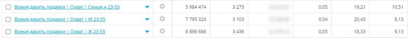 Поэтому мы запустили в таргет другие гипотезы: пересечение аудиторий Look-alike по базе, которую предоставил клиент, протестировали широкую аудиторию с разбивкой по полу, возрасту и т.д).