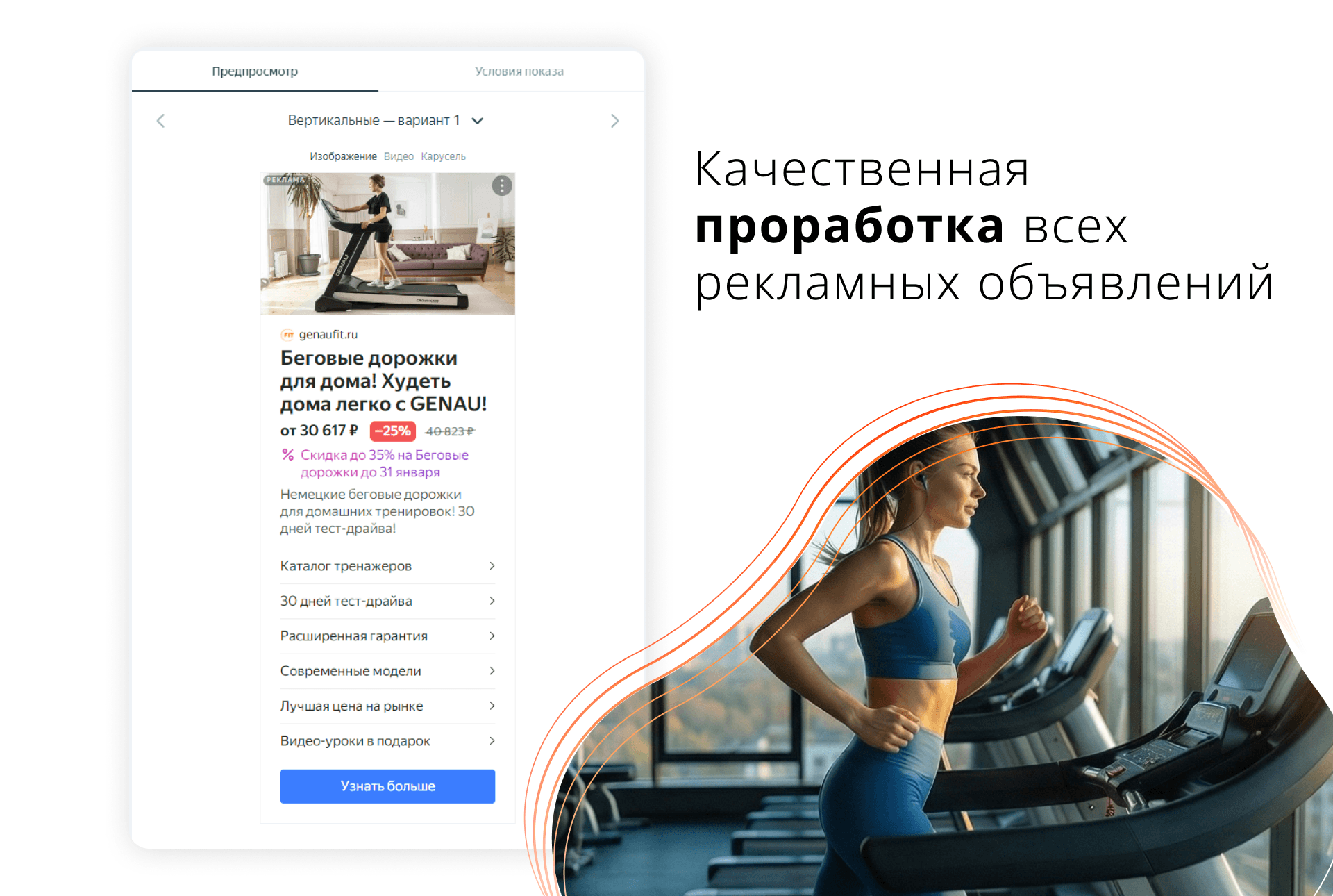 Мы качественно проработали все рекламные объявления: Яндекс ориентируется на данные, поэтому важно подчёркивать каждое преимущество — это напрямую влияет на эффективность кампаний.