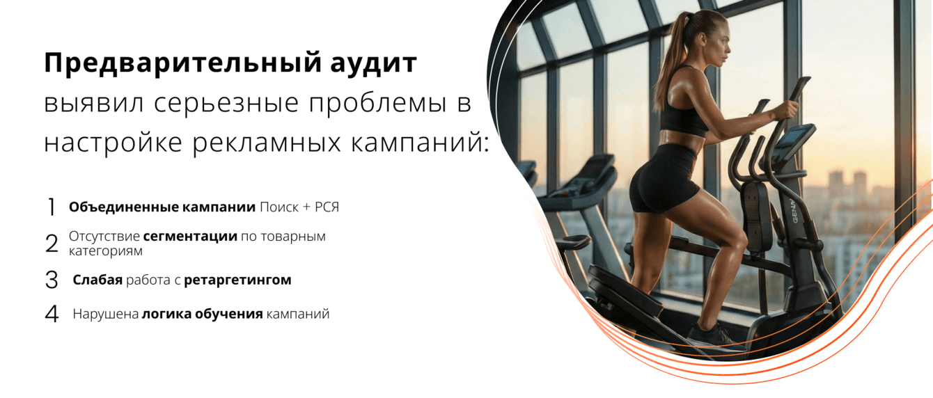 Клиент обратился к нам после длительного сотрудничества с другим агентством. Предварительный аудит выявил серьезные проблемы в настройке рекламных кампаний: