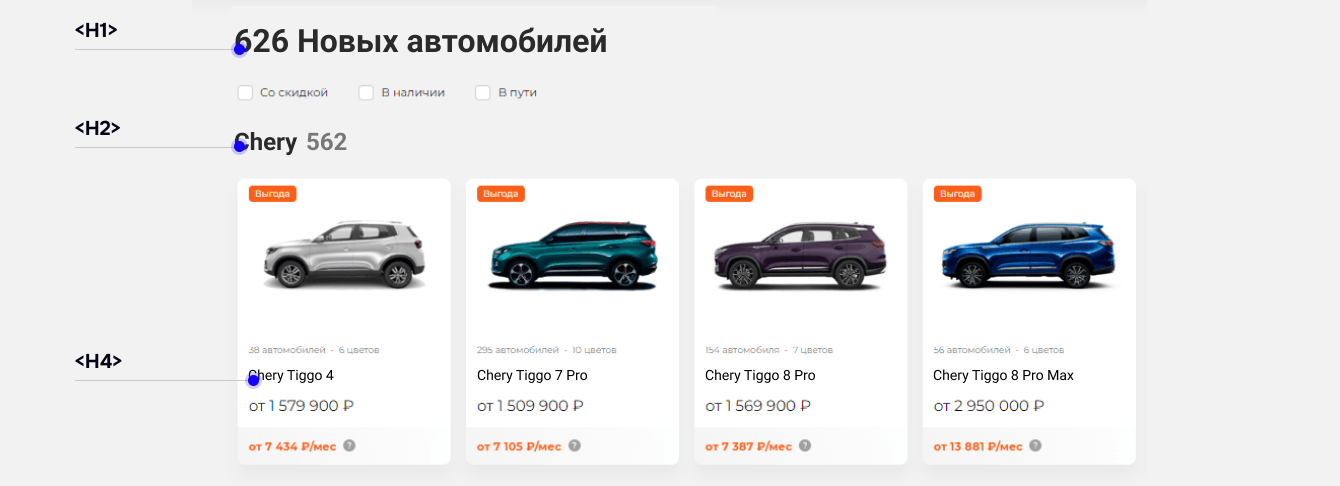 Проведена проверка тегов h. Составлены уникальные теги и добавлены переменные на динамические страницы.