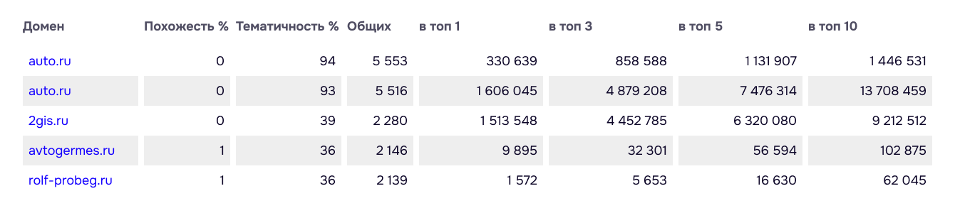 С помощью сервиса keys.so отобраны сайты с максимальной похожестью, тематичностью и пересечениям по запросам.