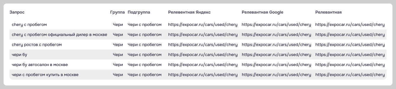 - Проведена проверка выдачи поисковых систем по всем вариациям брендовых запросов;