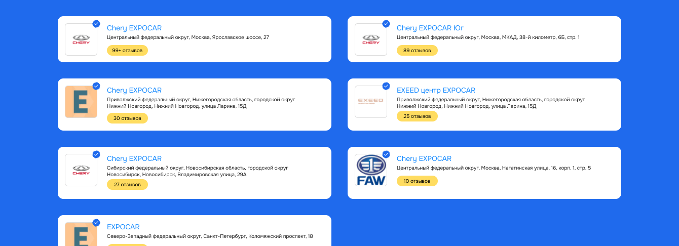 - 19 автосалонов в 7 городах России и более 7 000 проданных автомобилей.
