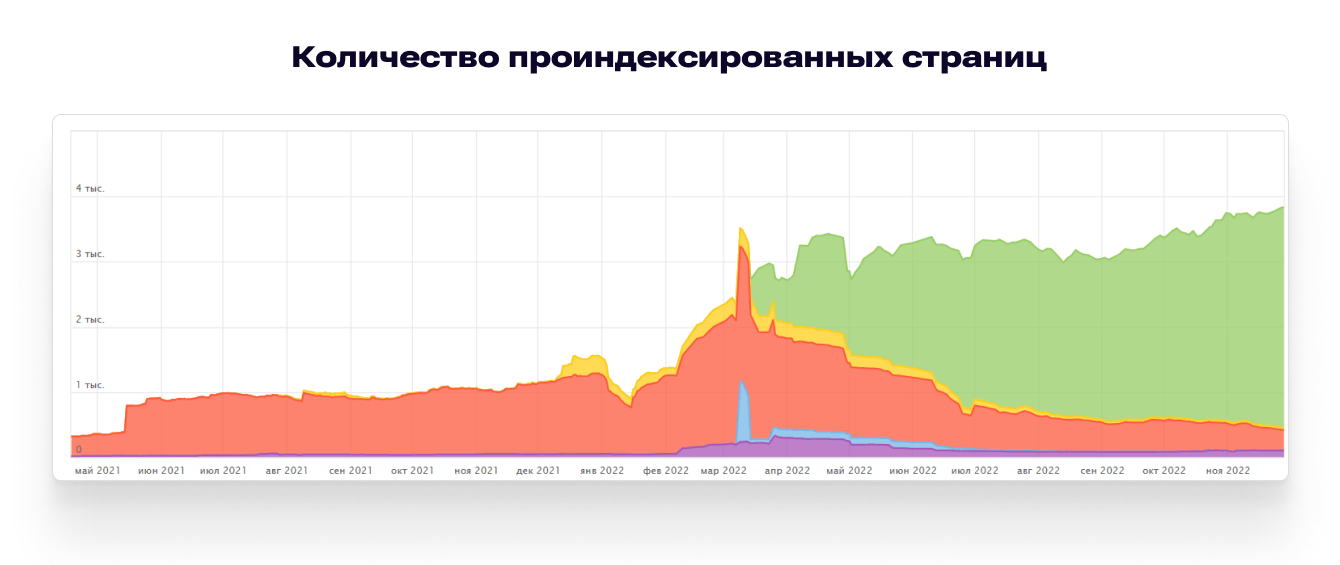 Улучшилась индексация сайта. Количество проиндексированных страниц увеличилось с 300 до 3800.