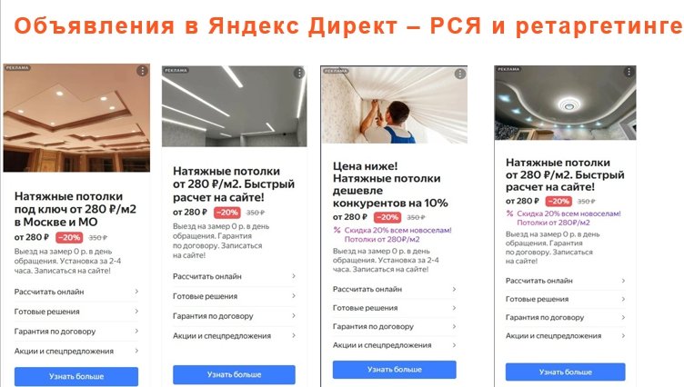 Акцент был сделан на - ценах, скидках, скорости монтажа, быстрый онлайн расчет