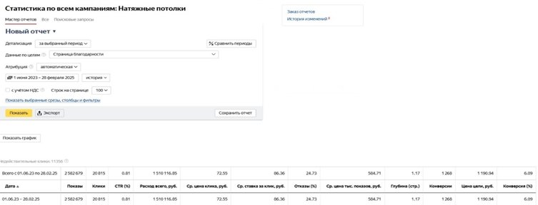 Настроить корректные аналитические отчеты для отслеживания динамики и эффективности рекламных кампаний.