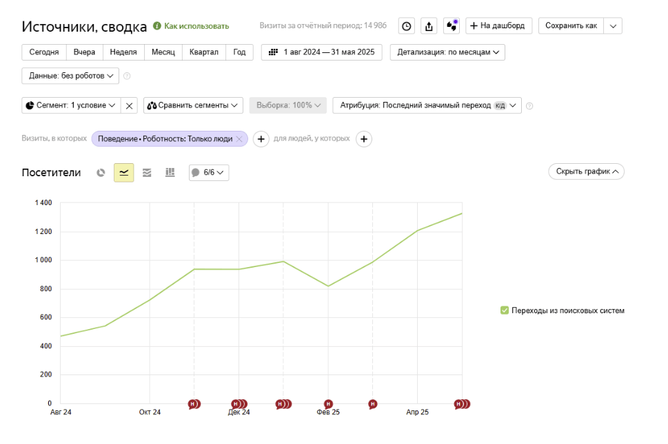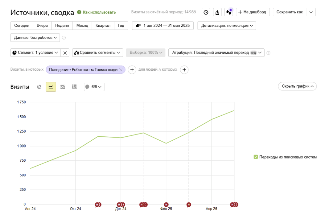 ● Увеличение количества визитов на 162% с августа 2024 по май 2025.