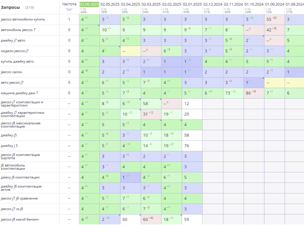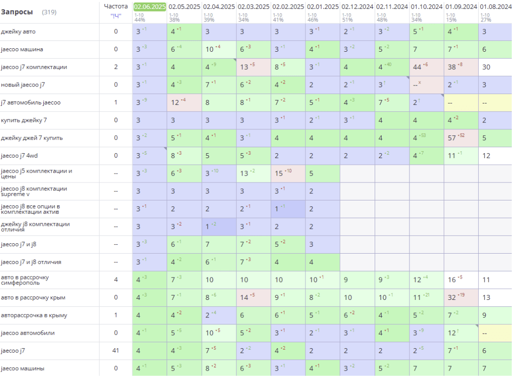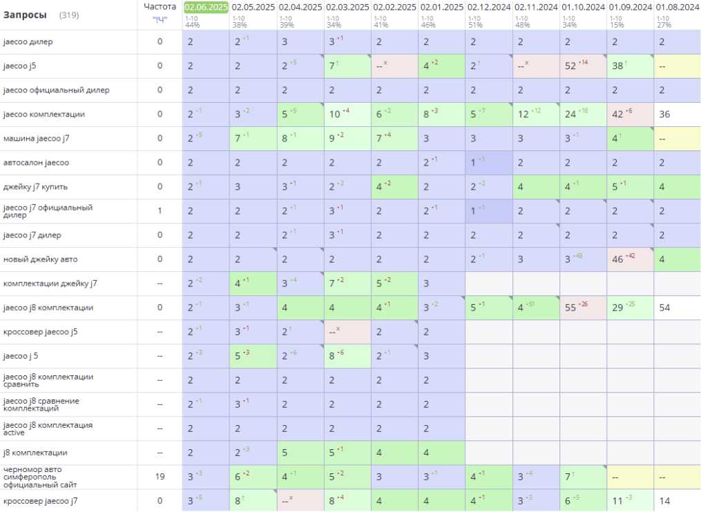 Задача проекта — значительно увеличить целевой органический трафик на сайт дилерского центра Jaecoo с целью дальнейшего повышения продаж автомобилей и сопутствующих услуг за счет улучшения позиций в поисковых системах и усиления локального присутствия.