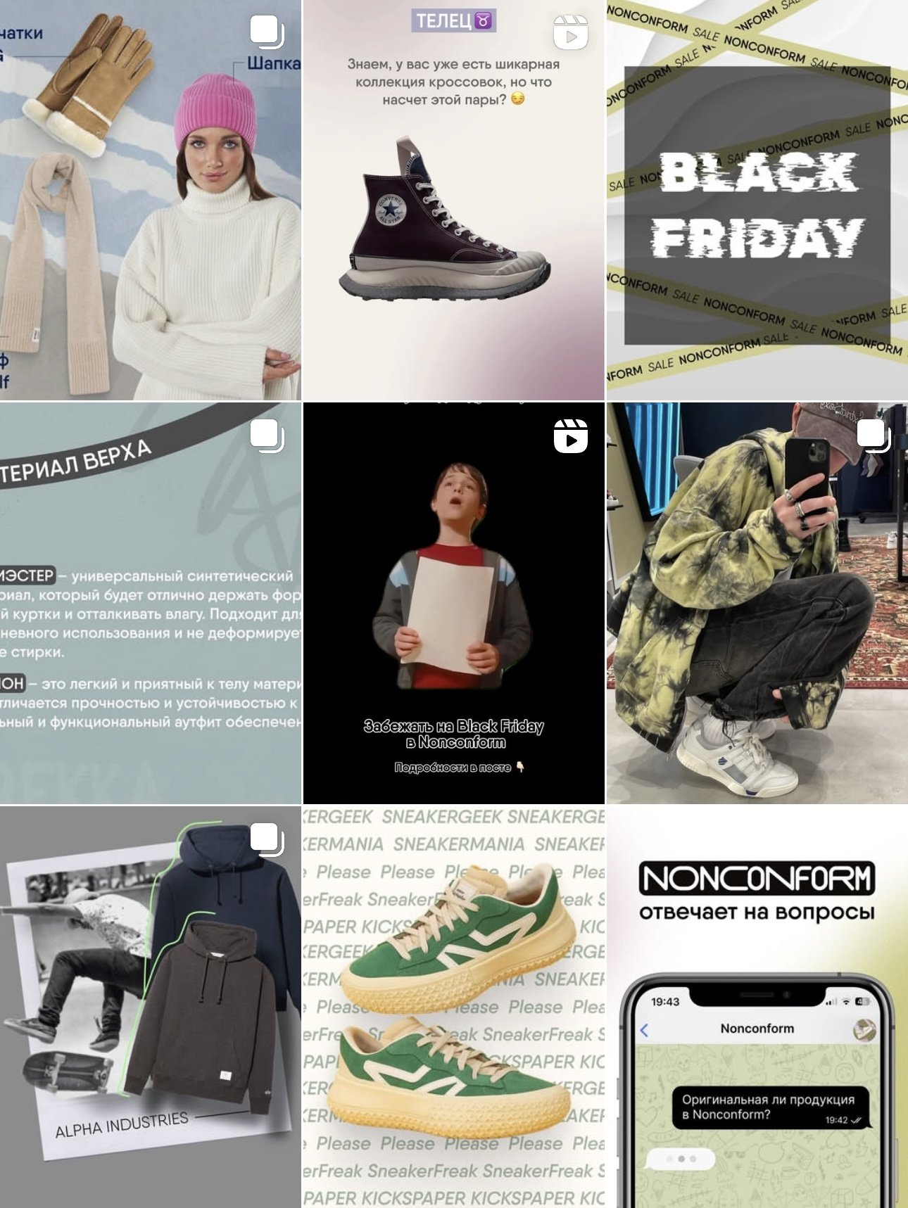 Мы предложили разработать новую единую визуальную концепцию со свежим и актуальным дизайном для социальных сетей. До старта нашей работы брендом зачастую использовались каталожные кадры со съемок или пэкшоты. Чтобы выстроить в сознании аудитории ассоциативный ряд с сетью магазинов, в новом контенте мы сделали акцент на ярких фотографиях и современной палитре: оранжевый и лаймовый и зеленый цвета с минималистичным шрифтовым решением с добавлением обводки.
