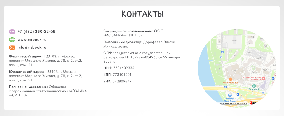 Также оформили страницу «Контакты» — добавили полную информацию о компании, чтобы сайт выглядел прозрачным и понятным.