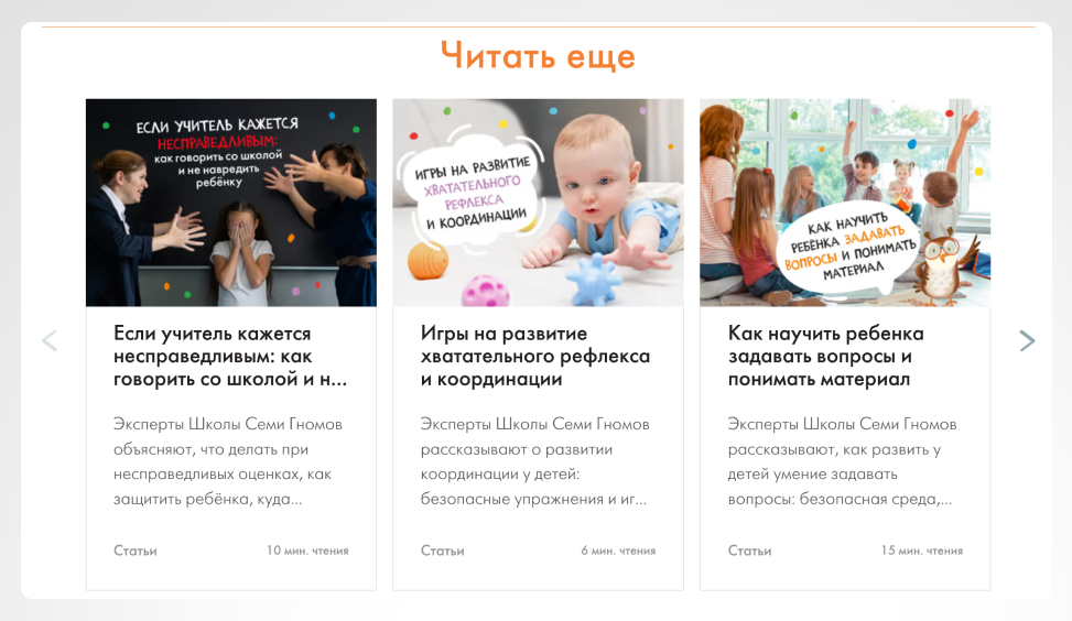Параллельно связали статьи между собой: добавили блоки «читайте также» и ссылки на похожие материалы, чтобы пользователь мог продолжать изучать блог.