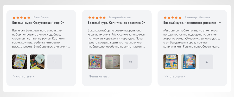 Сделали страницу с отзывами, чтобы пользователи могли увидеть опыт других людей.