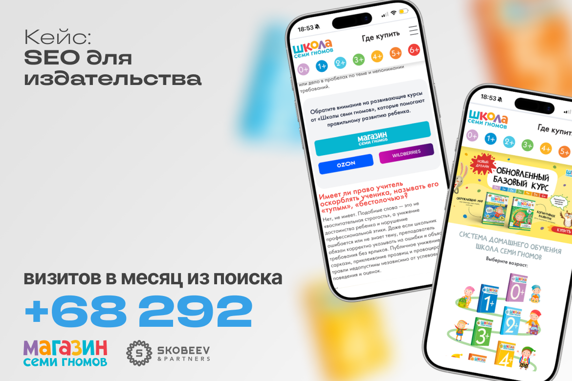 К нам обратилось издательство с проектом «Школа Семи Гномов» — это известная система раннего развития и подготовки к школе. Программа существует с 2004 года, переведена на несколько языков, а общий тираж книг превышает 40 миллионов экземпляров.