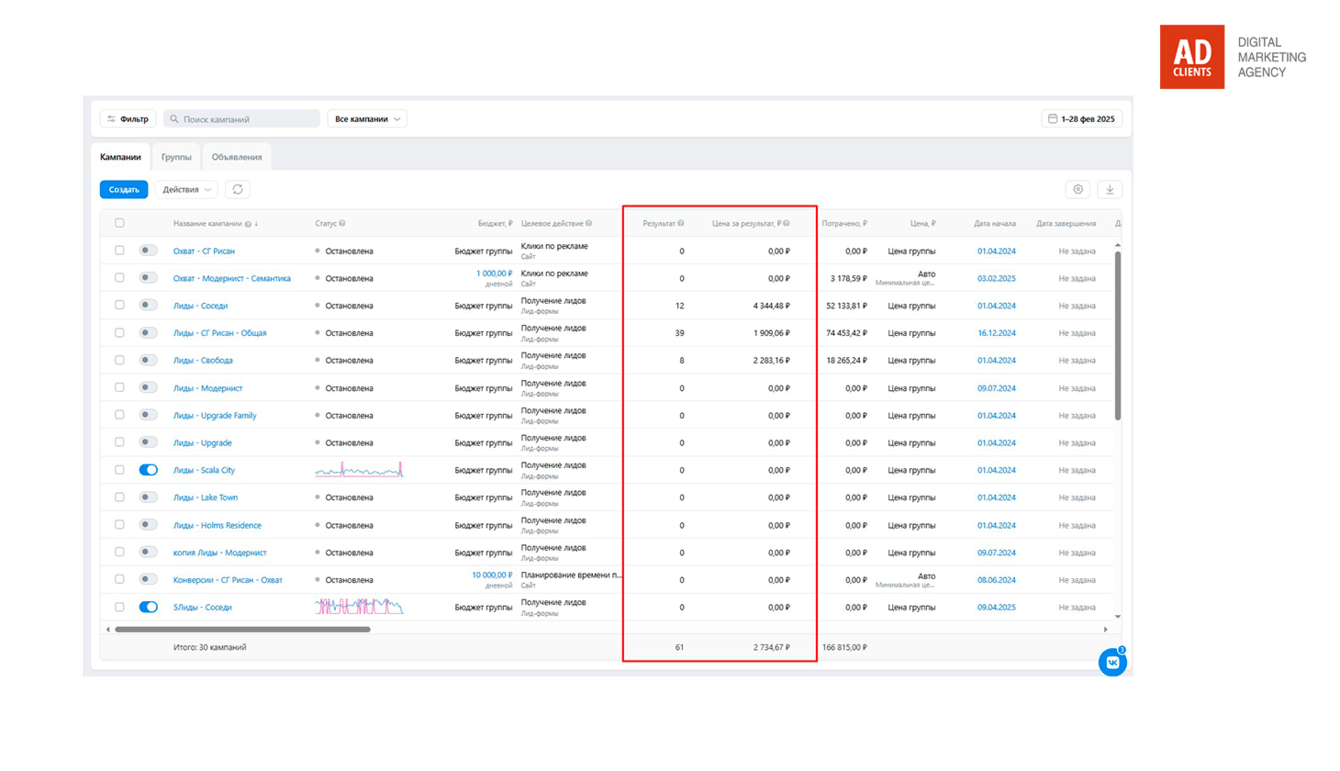 2. Охватить все ЖК в рамках одной рекламной кампании.