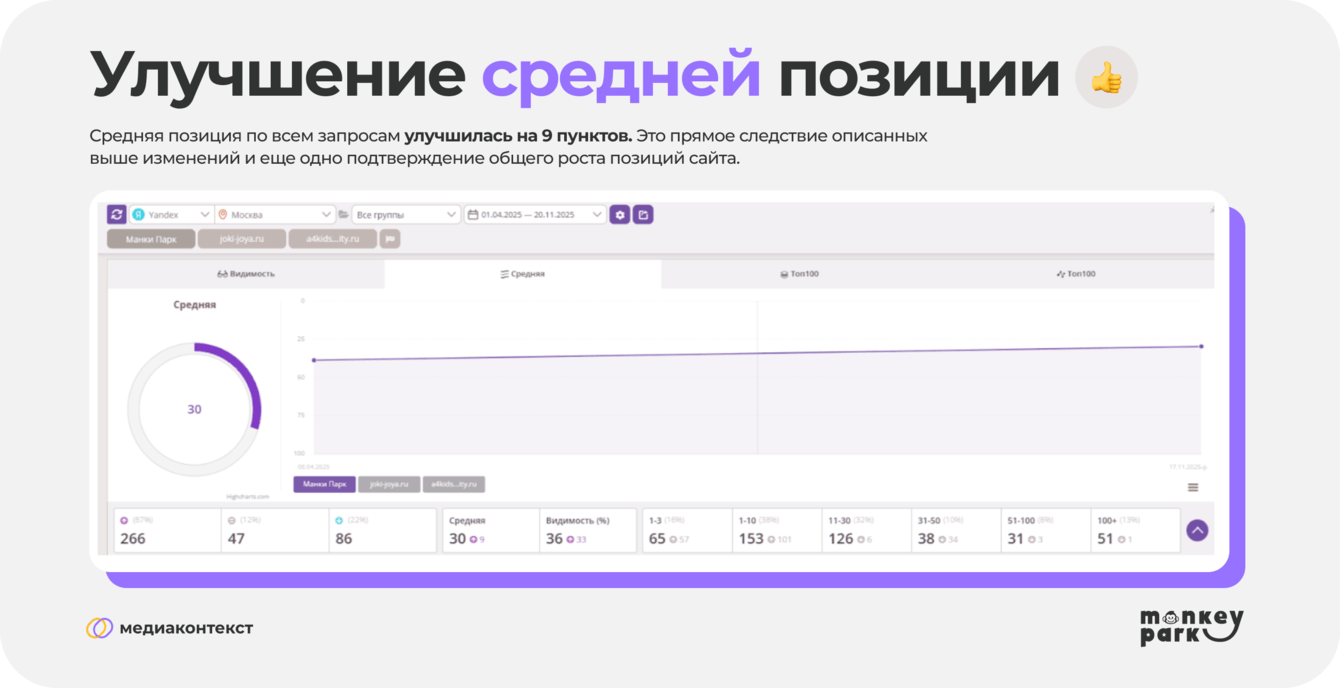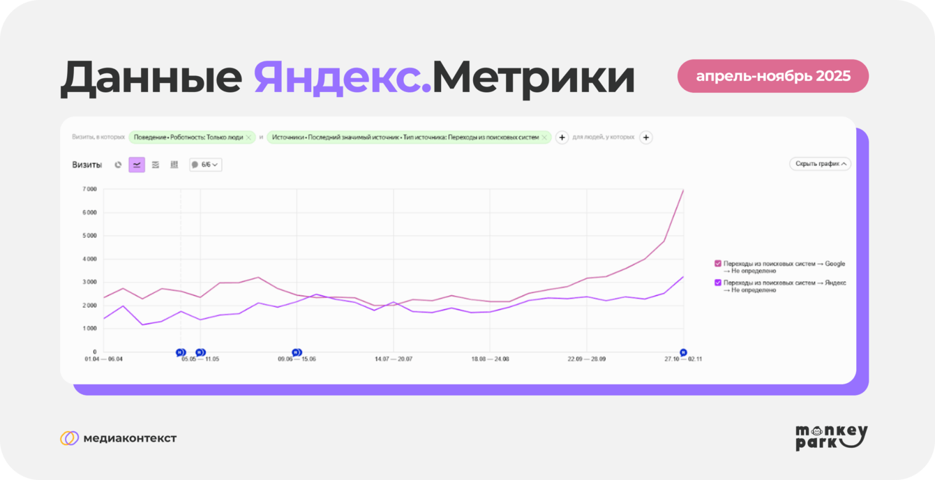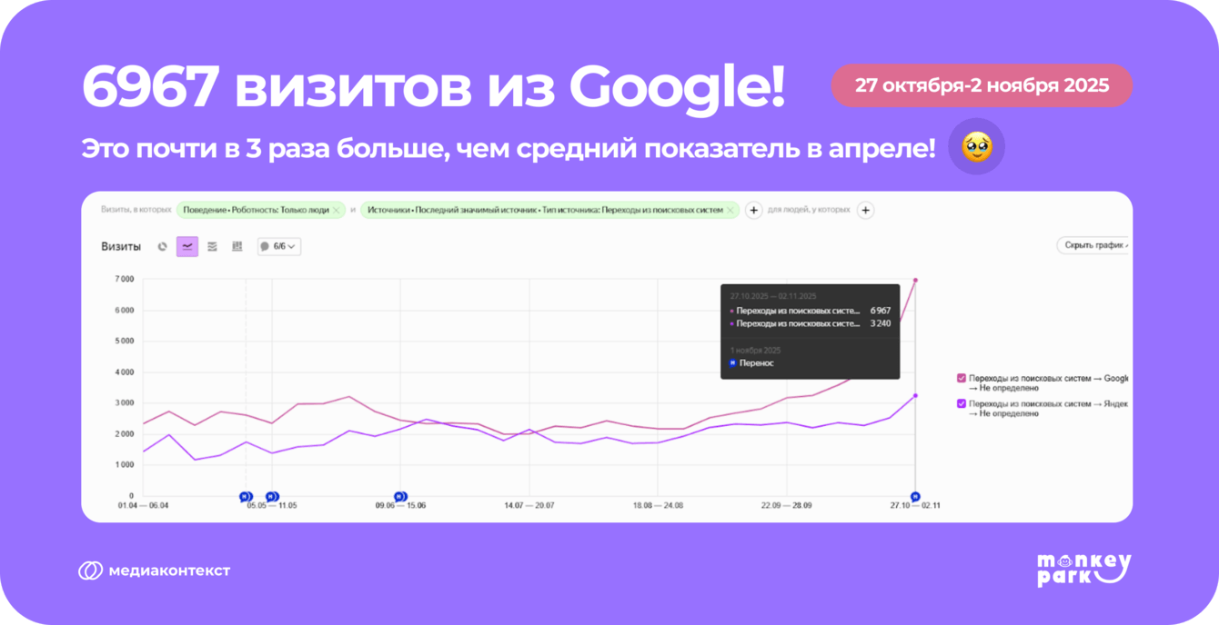 За период с апреля по ноябрь 2025 г. SEO-продвижение сайта было чрезвычайно эффективным: