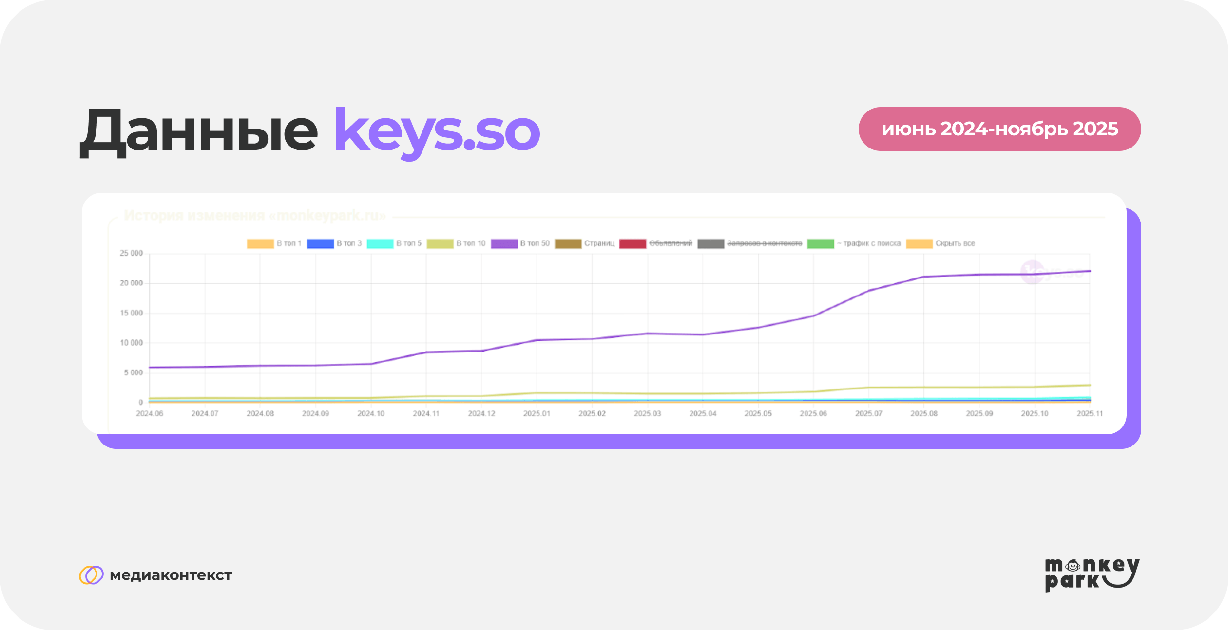 За период с апреля по ноябрь 2025 г. SEO-продвижение сайта было чрезвычайно эффективным: