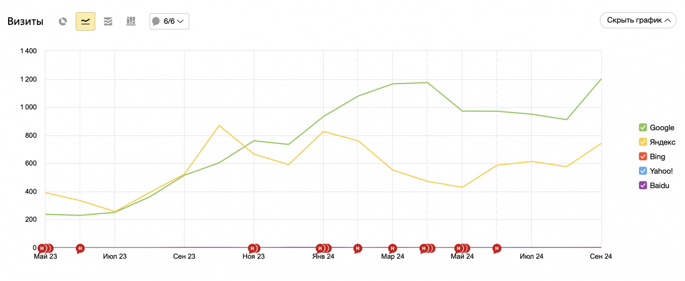 Хочу сказать огромное спасибо Антону и его команде? За 4 года я поменяла больше пяти подрядчиков по seo и контекстной рекламе, и от работы с Антоном и его командой уже после 1,5 месяцев результаты потрясающие. Я даже не думала, что такое возможно) По сути, я сократила бюджет на рекламу и получила на 30% больше заявок по итогу.