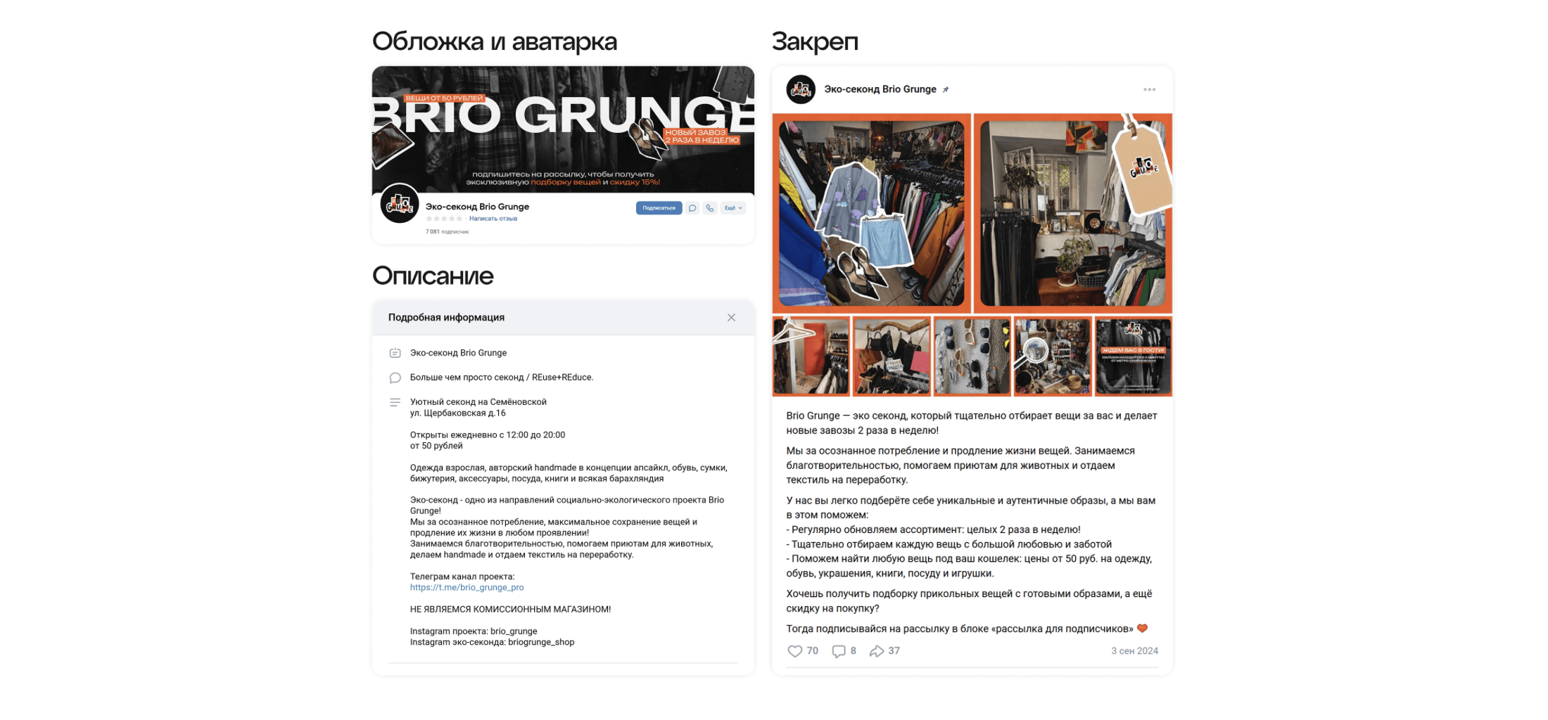 ▪️Создали контент-план с акцентом на уникальность Brio Grunge