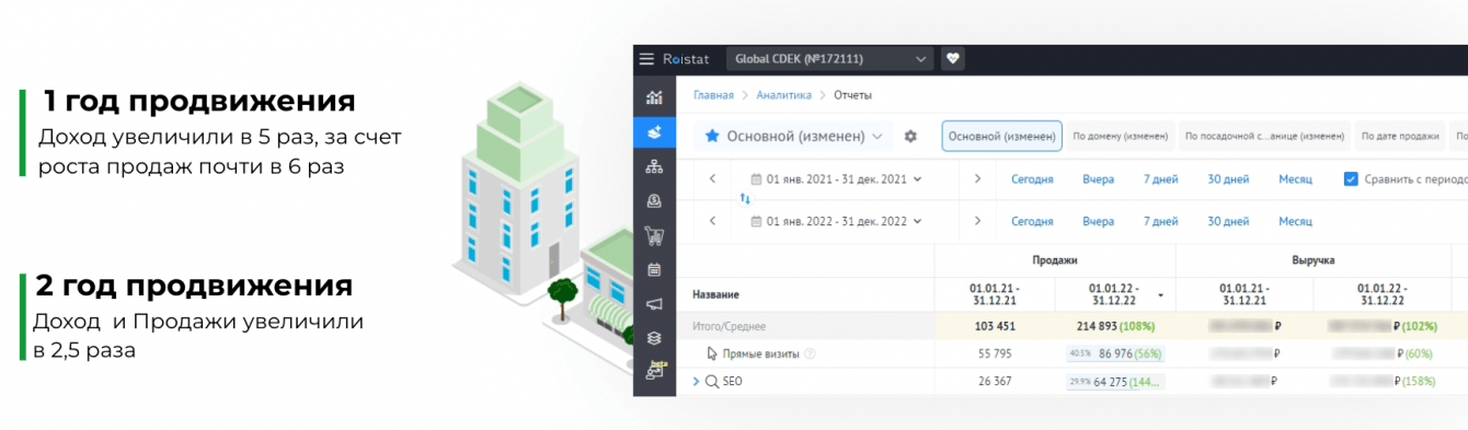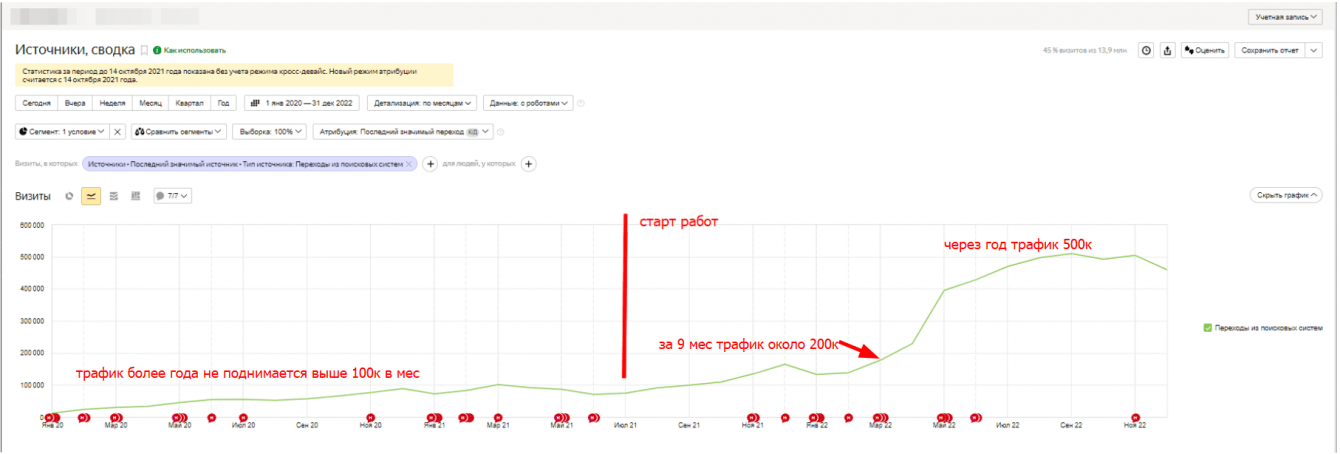 До продвижения трафик был менее 100к в мес, после продвижения более 500к в мес