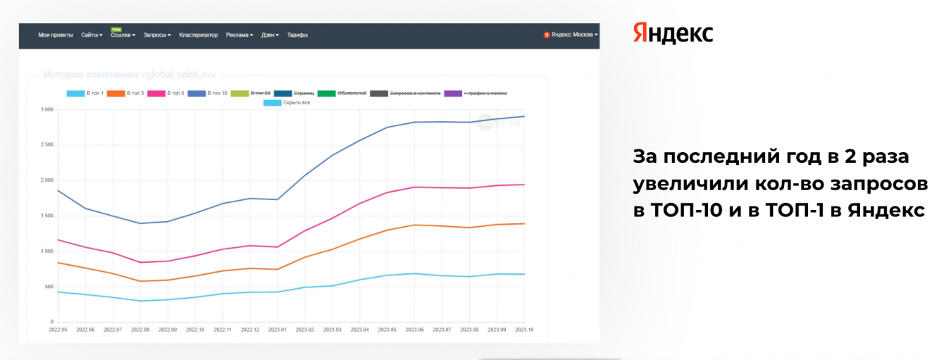 2. Почти 3000 запросов в ТОП-10 Яндекс