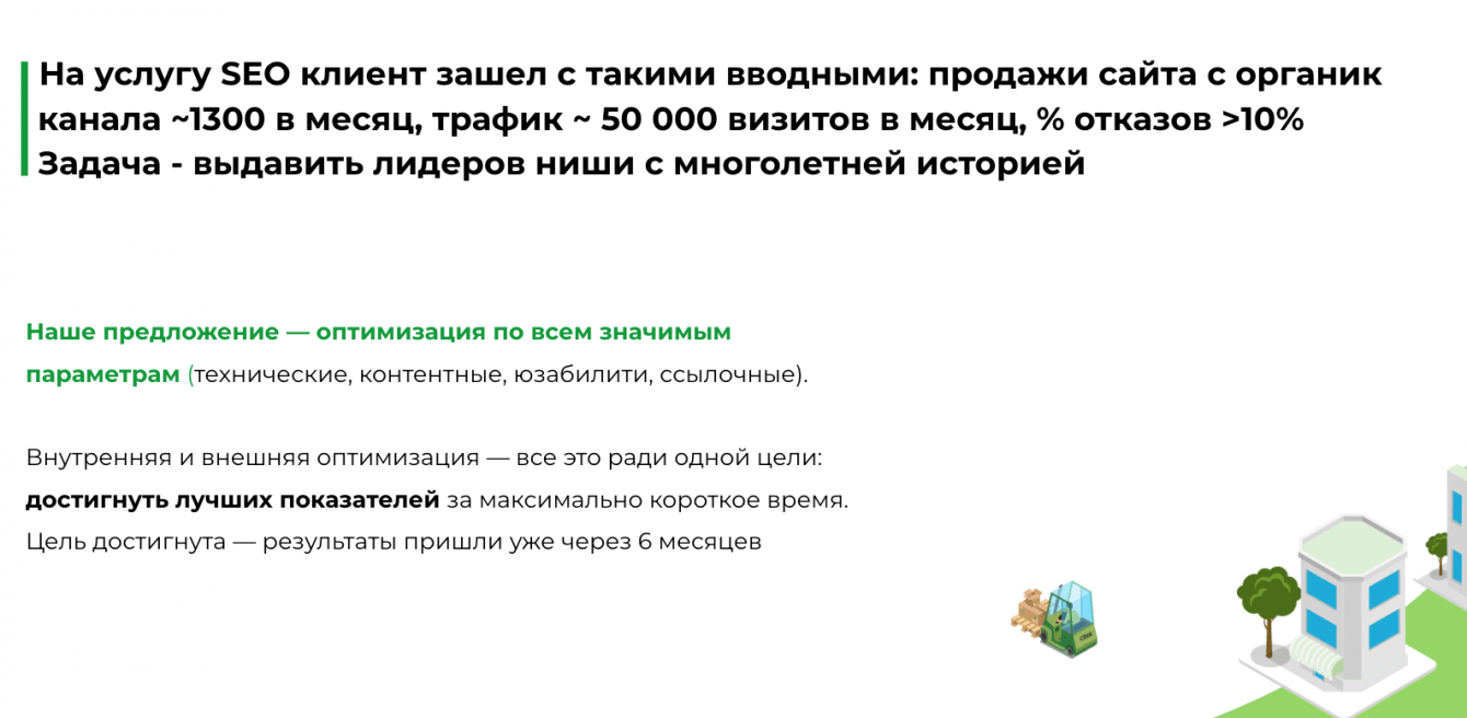 Основная задача - Привлечение целевого трафика за счет роста позиций в выдаче.