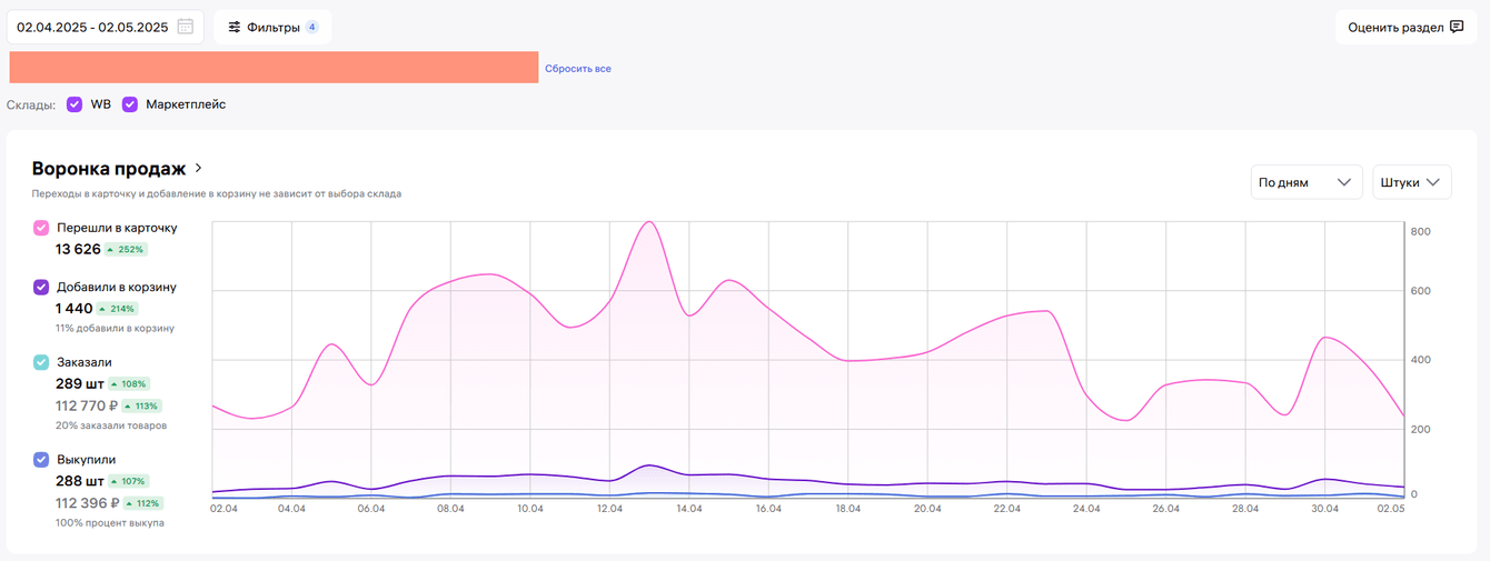 Клиент просил в течение предстоящего месяца увеличить видимость товара, улучшить конверсию и кратно поднять количество заказов на фоне сезонного снижения интереса к категории «чай».