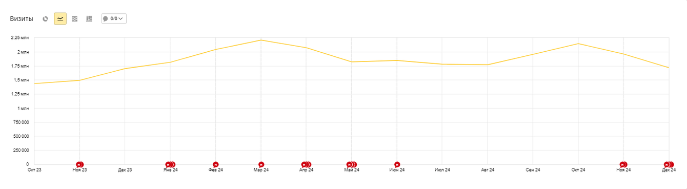 Слаженная работа по всем направлениям позволила проекту не только сохранять высокие позиции, но и стабильно увеличивать трафик. Комплексная стратегия SEO, ориентированная на техническую поддержку, расширение структуры сайта, проработку коммерческих факторов и создание востребованного контента, доказала свою эффективность: