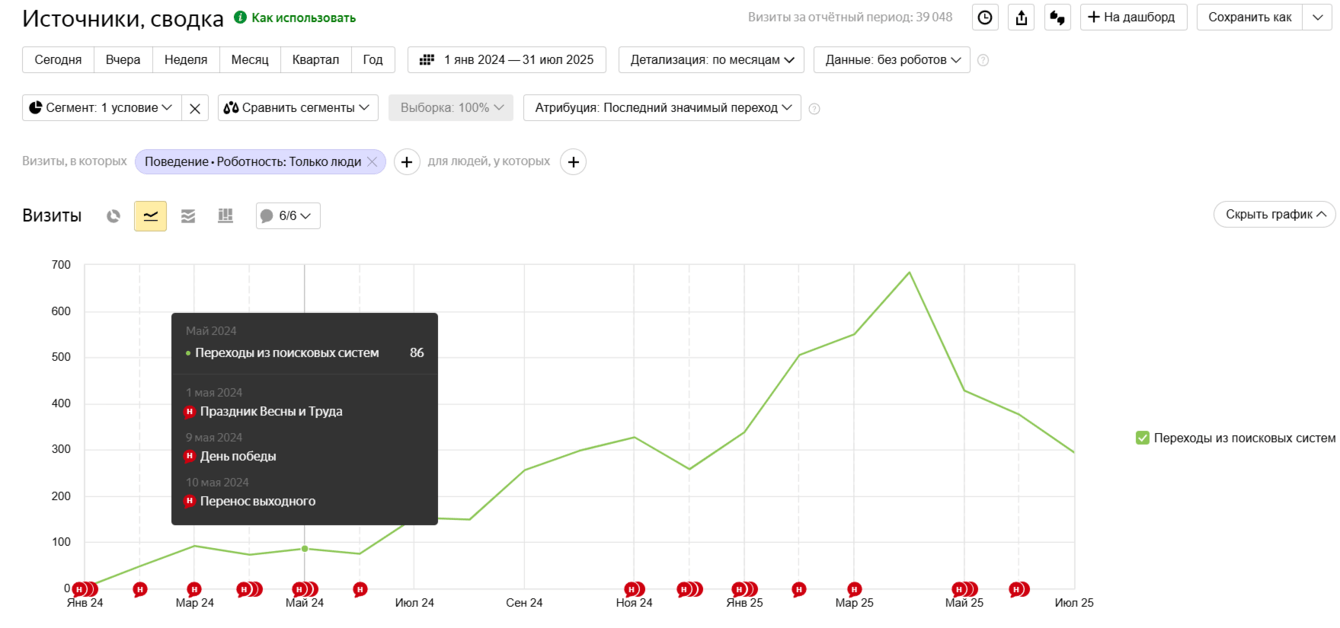 — К маю 2025 684 визита. Рост почти в 8 раз.