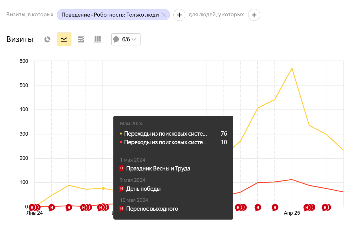 — К маю 2025 684 визита. Рост почти в 8 раз.