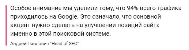 79% трафика из поиска Google клиент получал именно из рекомендаций.