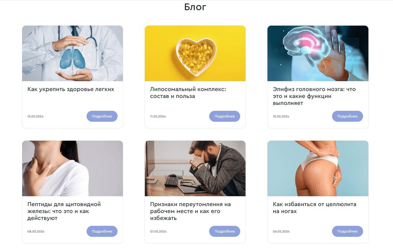 Помимо оптимизации существующего контента, мы также сфокусировались на создании нового, качественного контента для сайта. Были определены ключевые информационные запросы аудитории, связанные с БАДами, здоровым образом жизни и пищевыми добавками.